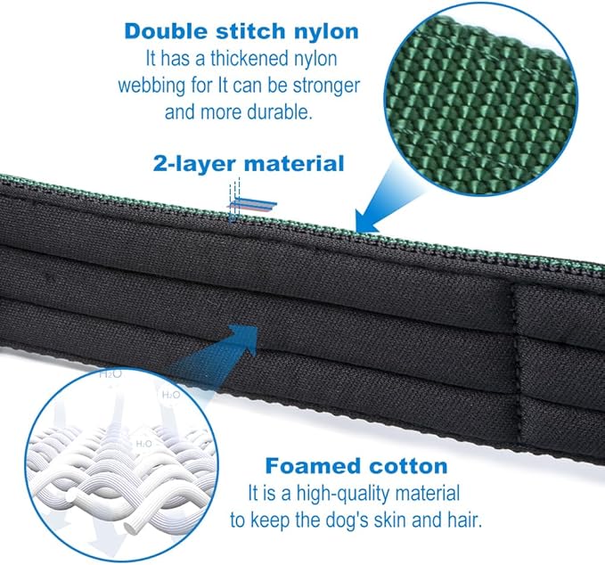 - Durable Comfortable Material. The nylon of this military dog collar is thick, tough yet comfortable,and the soft padded lining provides a comfortable wearing and avoid your dog from rubbing against the skin. When you receive and feel the big dog collars you will know that it was made with quality and care