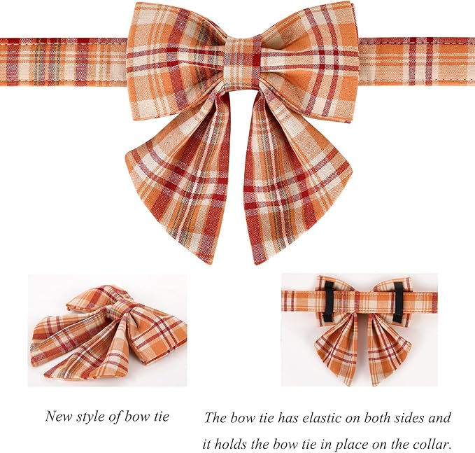 Lionet Paws Fall Dog Collar with Bowtie, Orange Dog Collar with Plastic Buckle for Medium Dog Halloween Thanksgiving Day Gift, M, 13.5-22 in