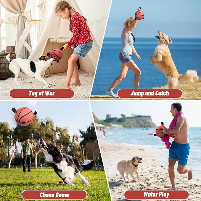 QDAN Dog Ball Basketball Toys, Balls with Straps, Dog Water Toy Pool Toys for Small Medium Dogs (6 Inch)
