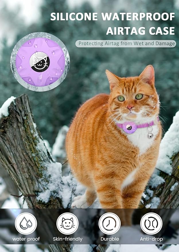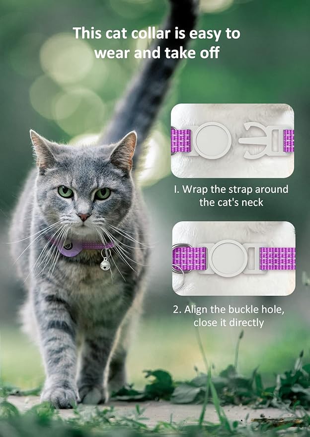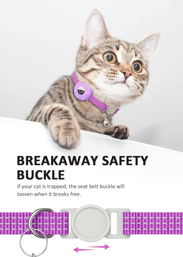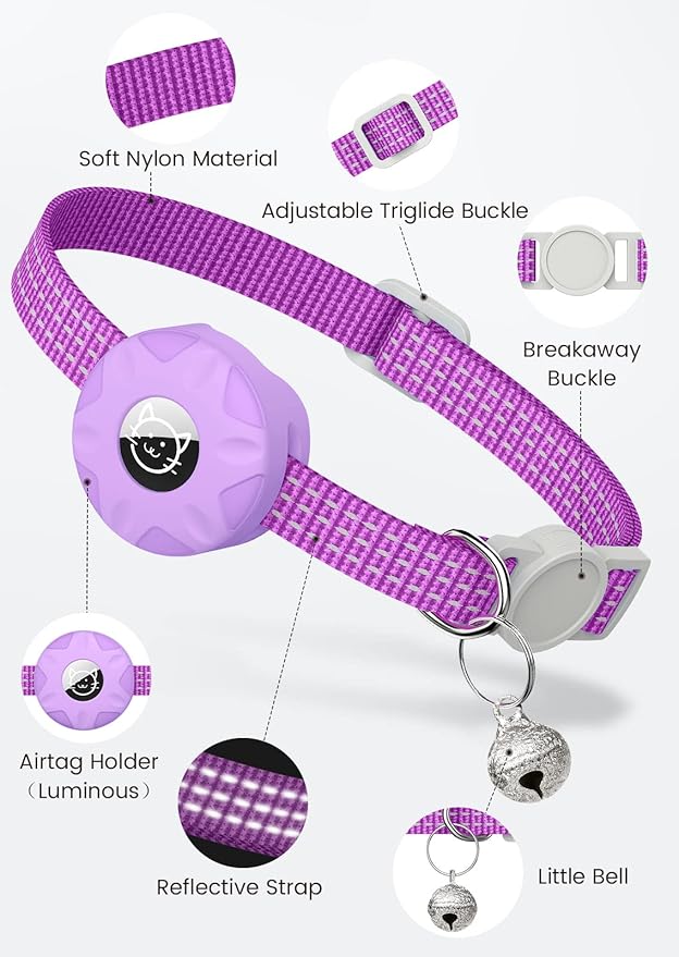 Apple AirTag Cat Collar, GPS Tracker Kitten Collar with Reflective Breakaway Holder and Bell, Lightweight for Cats & Kittens (Purple)