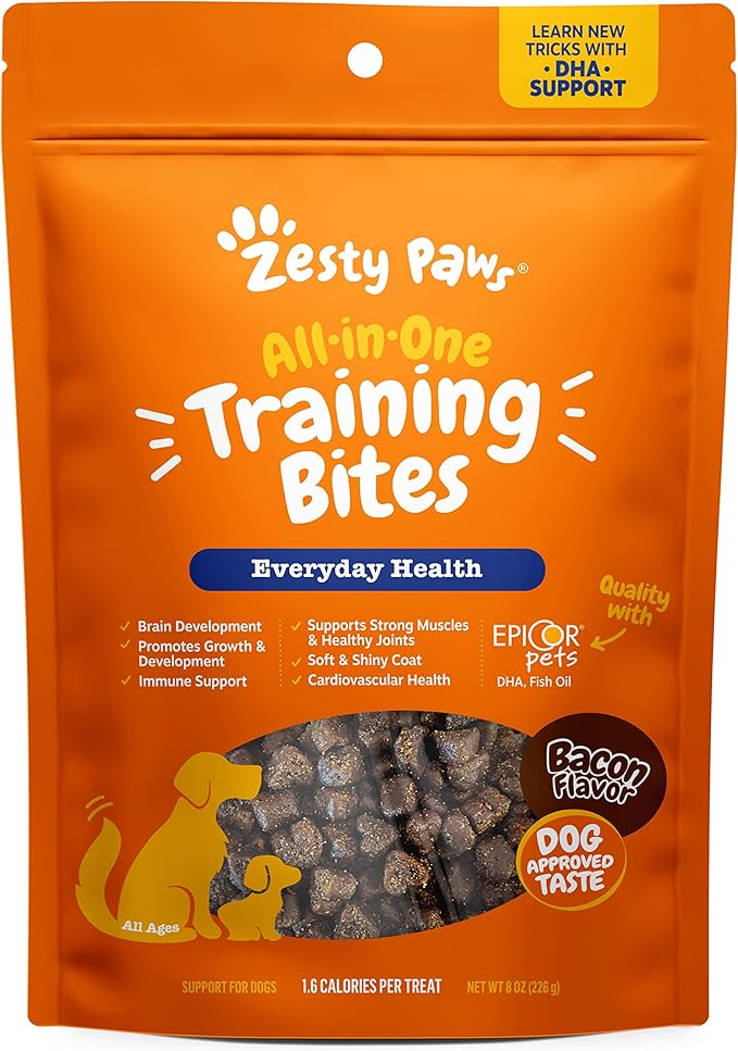 Zesty Paws Training Treats for Dogs & Puppies - Dog Treats for Training - Healthy Dog Chews for Hip, Joint & Muscle Health - for All Breeds and Ages - Bacon Flavor - 8oz
