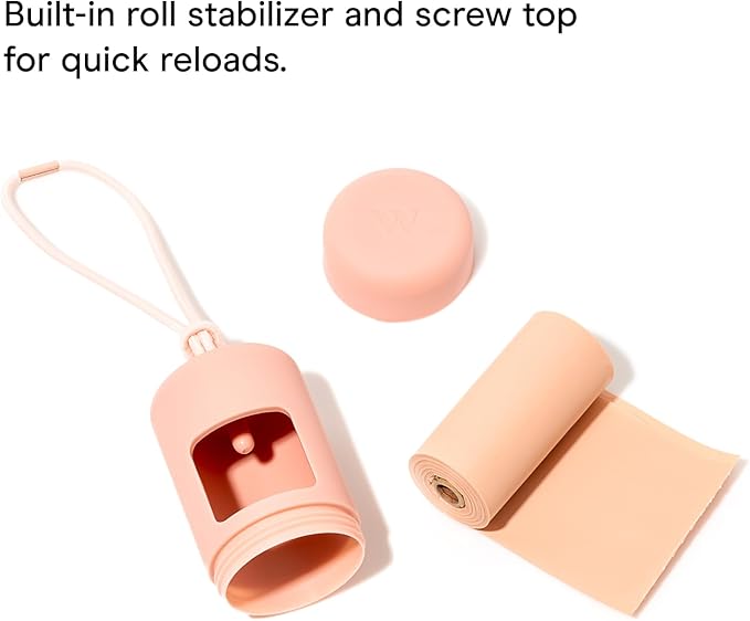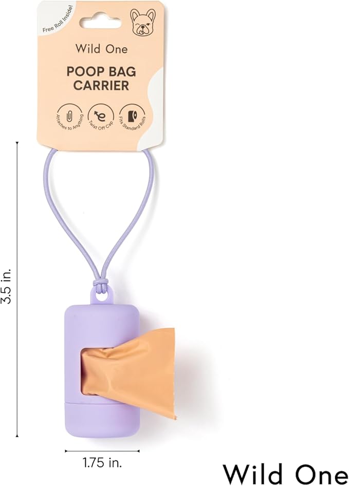 Wild One Dog Poop Bag Holder and Dispenser with Leash Attachment, Leak Proof, Easy Twist Top for Refills, Includes 1 Roll Bags, Spruce
