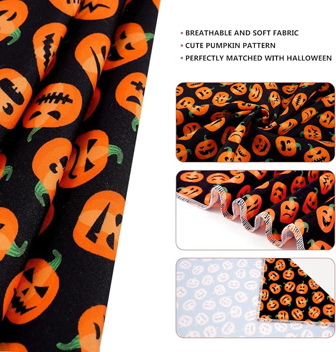 E-Clover Halloween Dog Bandanas & Matching Scrunchie Set Pumpkin Dog Scarf Kerchiefs Pet Outfit for Medium Large Dogs Owner Mom Orange Black Fall