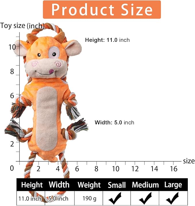 Dog Toys, Tug of War Dog Toys for Large Breed, Cute Squeaky Interactive Dogs Toy with Crinkle Paper, Plush Puppy Chew Toy for Small, Middle, Big Dogs (Cow-SS)