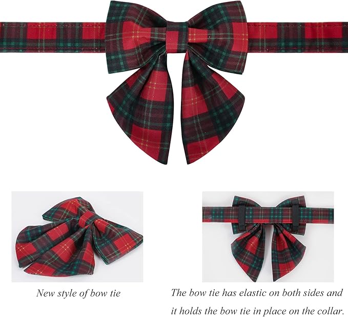 Lionet Paws Christmas Dog Collar with Sailor Bow, Bowtie for Dogs, Adjustable Comfortable Dog Collar Girl, L, Neck 16-24 in