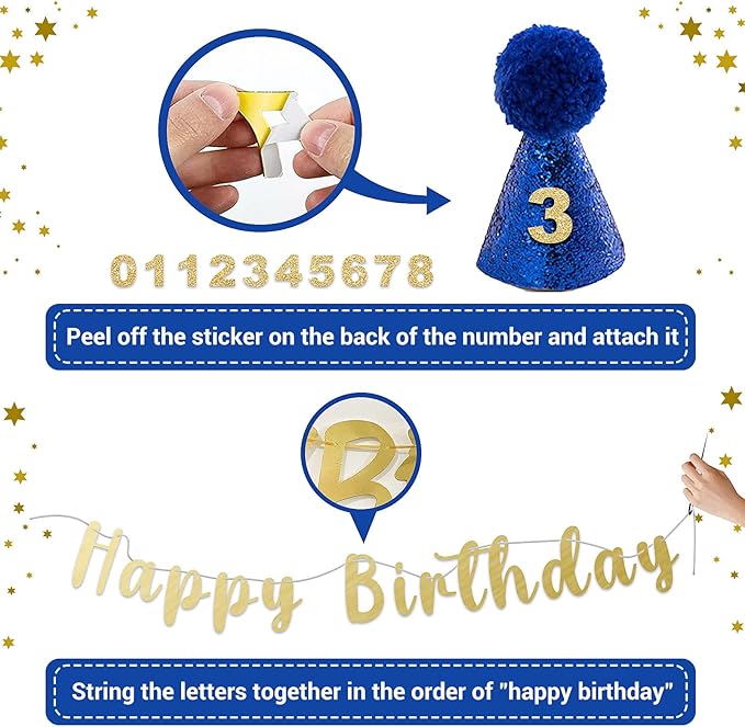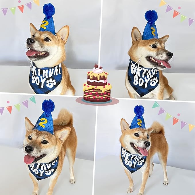 LESYPET Dog Birthday Party Supplies, Dog Birthday Hat with Bandana, and Banner, Cat Decorations Set for Party, Blue