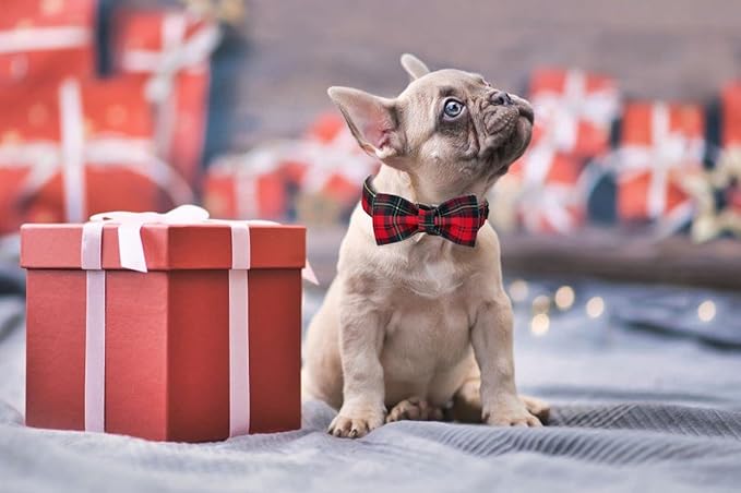 Lionet Paws Christmas Dog Collar with Bowtie, Dog Bowtie Collar with Metal Buckle for Dogs, Adjustable Comfortable Dog Collar Girl Boy Gift, XS, Neck 8-12 in