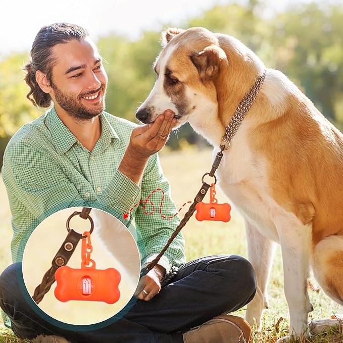 Zhehao 50 Pcs Dog Poop Trash Bag Holder Dispenser Plastic Dog Poop Waste Bag Holder for Leash with Hook and Leak Proof for Walking Hiking Camping(Bone)