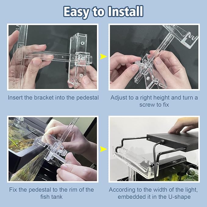 driamor Aquarium Light Riser Adjustable, Clear Acrylic Fish Tank LED Light Stand Aquarium Lamp Holder Bracket Kit 2pcs Transparent Support for Width 2.5-4.4 Inches Light with Extendable Bracket