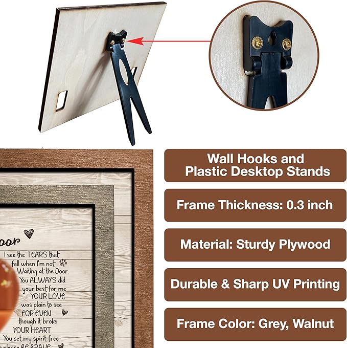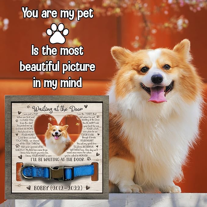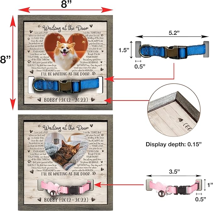 - ITEM DIMENSIONS: Our customized pet loss sign comes in two sizes, 8x8" and 8.7x10.6," and serves a variety of purposes. Additionally, you may use a personalized pet memorial frame as a table decoration or as a part of your home decor by placing it on a shelf, mantle, table, or wall. It will be a lovely pet memorial piece.