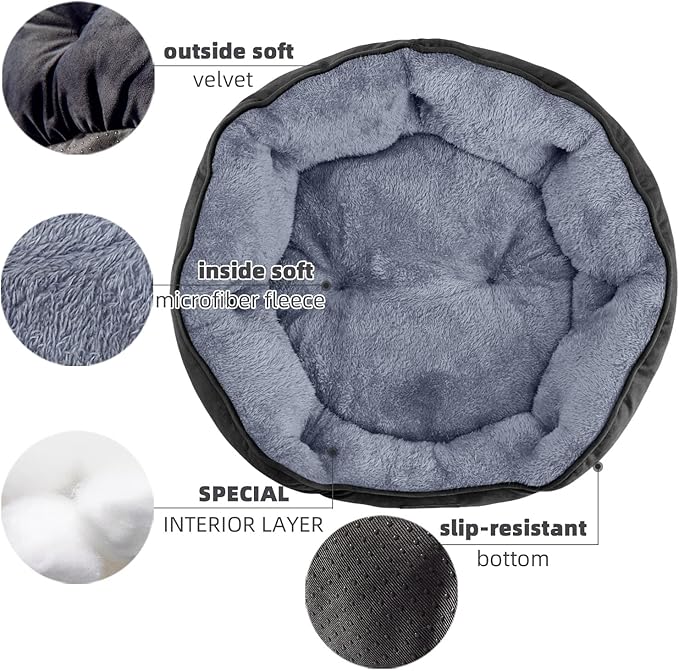 - Comfortable: Our pet bed can not only provide a soft and comfortable bed, but also become your lovely home decoration. The round design creates a sense of security and provide head and neck support
