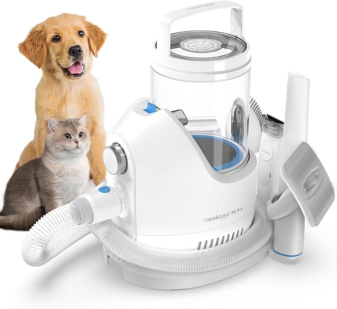 - Mess-Free Grooming: The Neakasa P2 Pro’s built-in vacuum captures 99% of pet hair while trimming and brushing—no more fur-covered floors or clothes.
