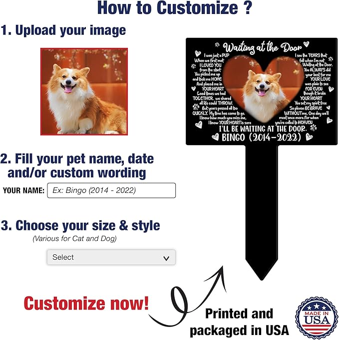 - PRINTING: All of our custom dog outdoor grave marker crosses are processed with outstanding UV printing technology, sharp and durable printed color, 1 side printing, and high-quality products. You will receive the pet plaque stake for the garden or yard in a timely manner.
