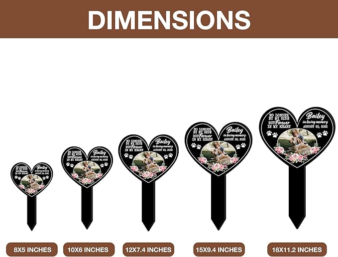 - ITEM DIMENSIONS: Our pet grave markers personalized animal cross comes in three sizes 3 sizes 8″ x 5″ & 10″ x 6″ and 13″ x 7.5″ and serves a variety of purposes. An acrylic stake is included. We recommend digging a hole first, then installing your memorial and backfilling it. This will prevent any damage or breakage to your memorial stake.