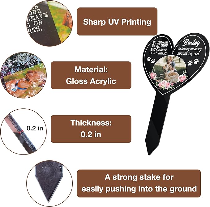 - HIGH-QUALITY MATERIAL: The sympathetic pet loss remembrance gift is made of sturdy Gloss Acrylic with 0.2 inches thickness. Having a beautiful keepsake sympathetic pet loss remembrance gifts to look at every day can help to alleviate some of the pain.