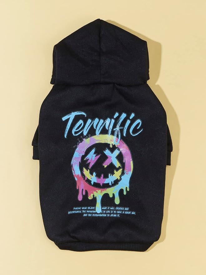 QWEEE Stylish Dog Clothes - Hoodie Sweatshirt for Cat, Kitten, Puppy - Black, XX-Small to Large