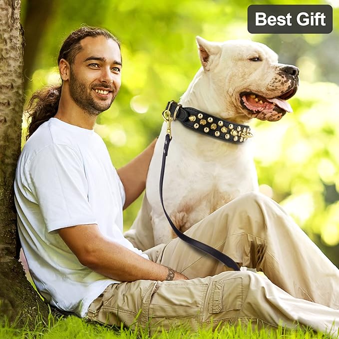 Epesiri Golden Spike Collar for Dogs, Gold Spiked Dog Collar, Durable PU Leather Studded Dog Collar with Leash, Funny Mushrooms Rivet Small Puppy Pet Cat Adjustable Collar, Black L