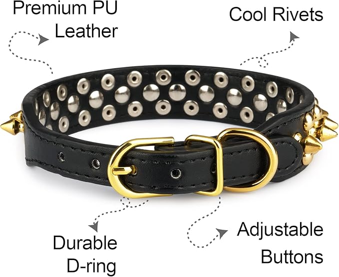 Epesiri Golden Spike Collar for Dogs, Gold Spiked Dog Collar, Durable PU Leather Studded Dog Collar with Leash, Funny Mushrooms Rivet Small Puppy Pet Cat Adjustable Collar, Black XL