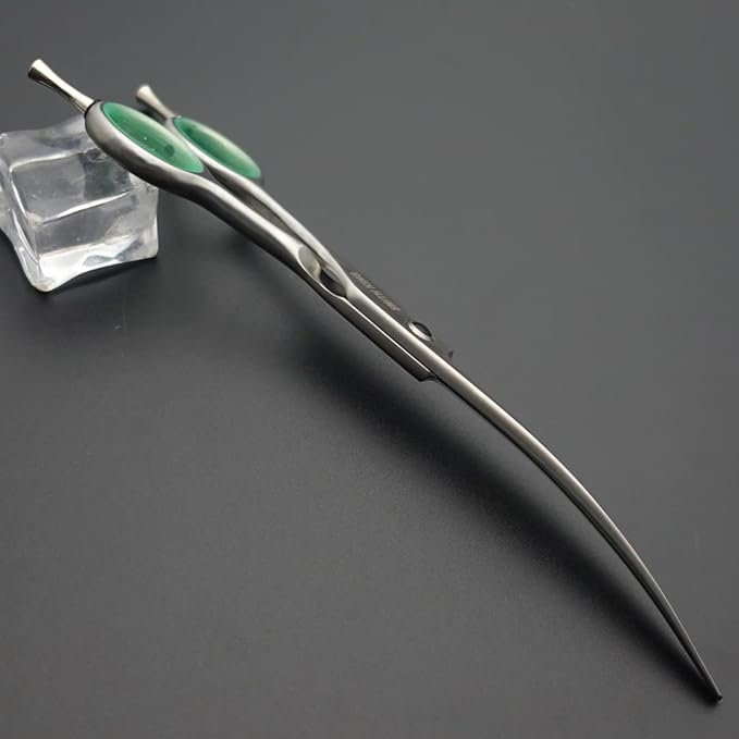 - SHARP EDGE. The edge line of the blade is evenly polished,which make the scissors durably sharp.With meticulously crafted clear tip of tooth ,the thinning scissors are sharp and do not clip the hair.The edge of the curved scissors is 25°-30°,majority standard angle to satisfy most part of groomers.