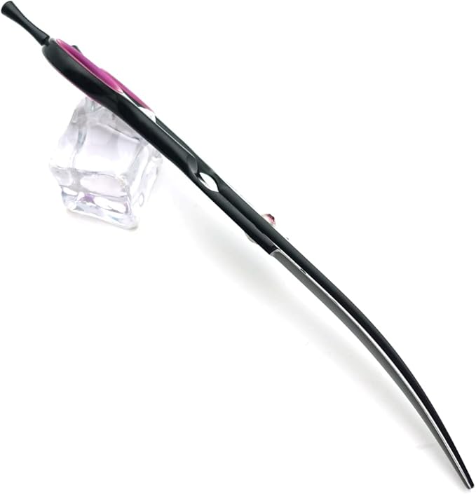 - SHARP EDGE. The edge line of the blade is evenly polished,which make the scissors durably sharp.With meticulously crafted clear tip of tooth ,the thinning scissors are sharp and do not clip the hair.The edge of the curved scissors is 25°-30°,majority standard angle to satisfy most part of groomers.