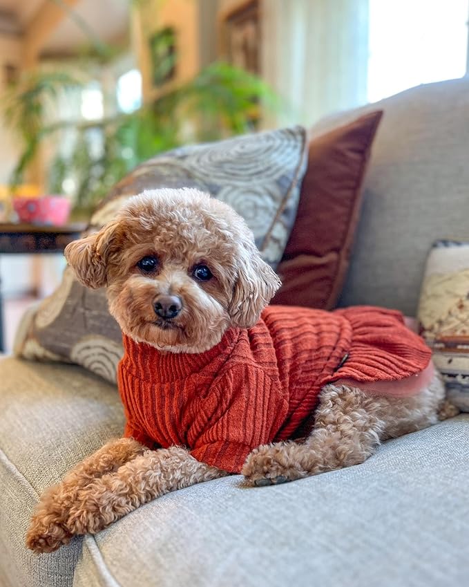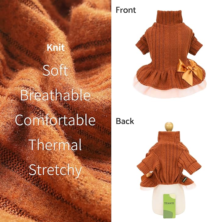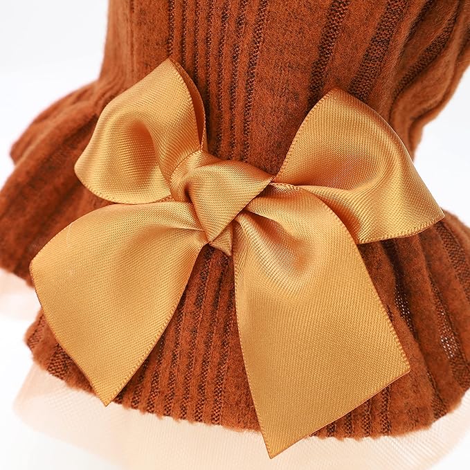 Fitwarm Knitted Dog Tulle Sweater Dress, Dog Winter Clothes for Small Dogs Girl, Cat Apparel, Orange, Medium
