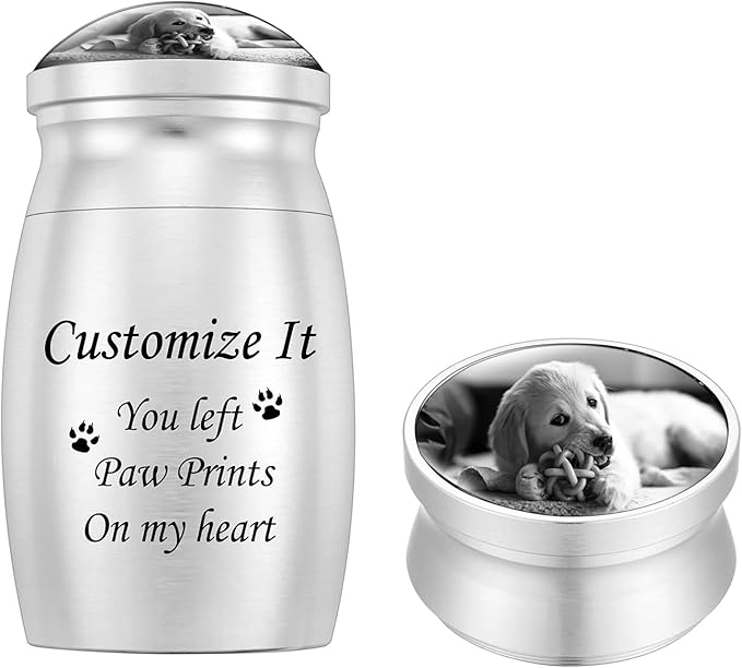 Personalized Photo 3 Inches Small Keepsake Urn for Pet Dog Ashes Aluminum Mini Cremation Urns Memorial Ashes Urn Miniature Burial Funeral Urns for Sharing Ashes Ashes Holder