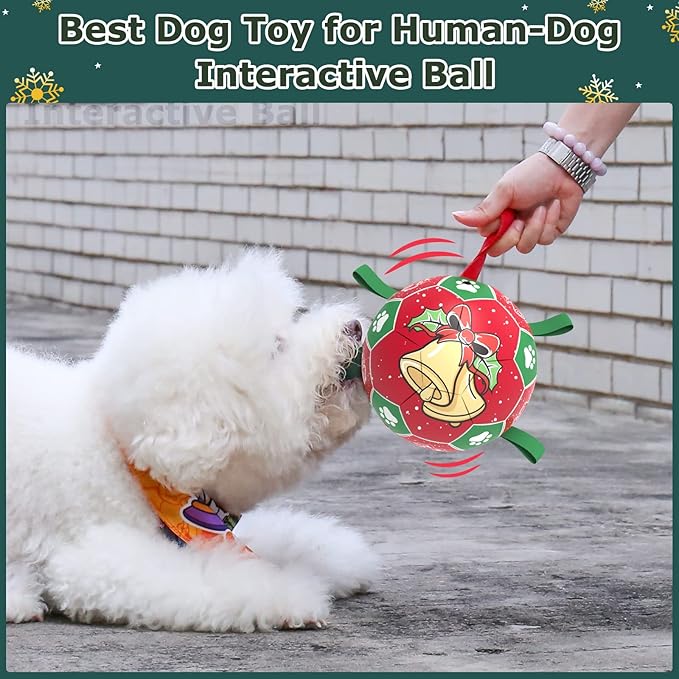 QDAN Christmas Dog Balls with Straps, Squeaky Dog Toys for Indoor Outdoor Playing, Puppy Birthday Gifts, Pet Toy Ball, Durable Herding Balls for Dogs (8 Inch)