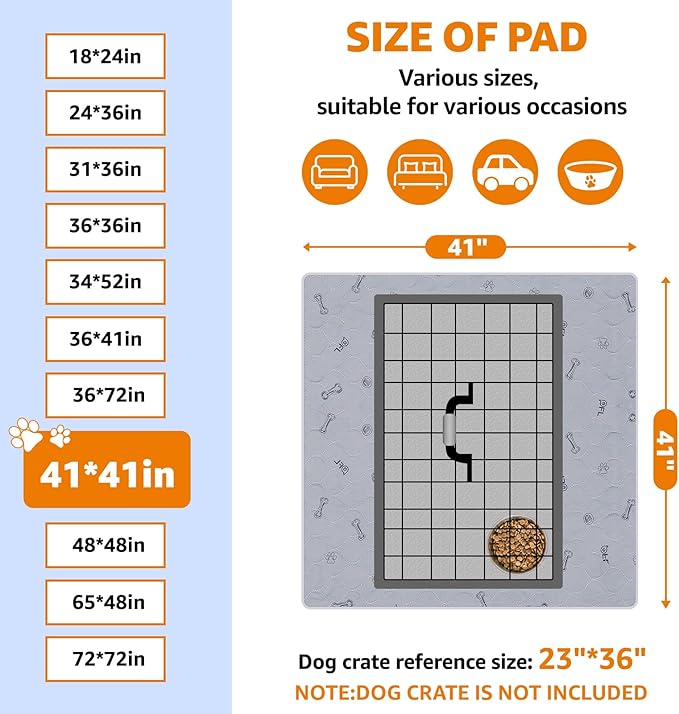 Washable Puppy Pads 2Pack , 41x41 Reusable Pee Pads for Dogs, Absorbent Whelping Pads with Bone Print, Waterproof Dog Rug Non-Slip Protector for Housbreaking,Potty Training,Bed Couch Carpet