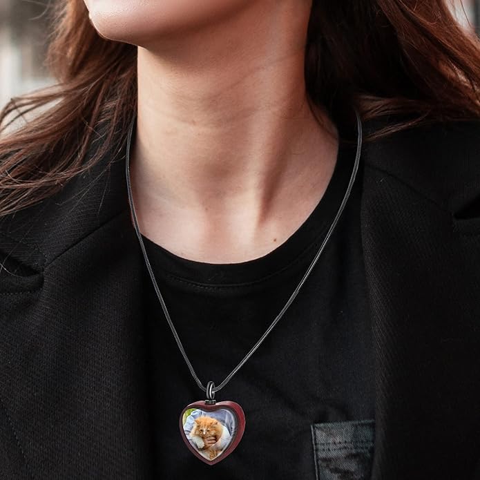 • 【Witness Of Deep Love - Personalized Pet Ashes Necklace】This necklace pendant is made of high quality wood, beautiful and charming. A sturdy glass cover protects customized photos and preserves your pet's smile and memories, ensuring your pet's memories are safe and secure.