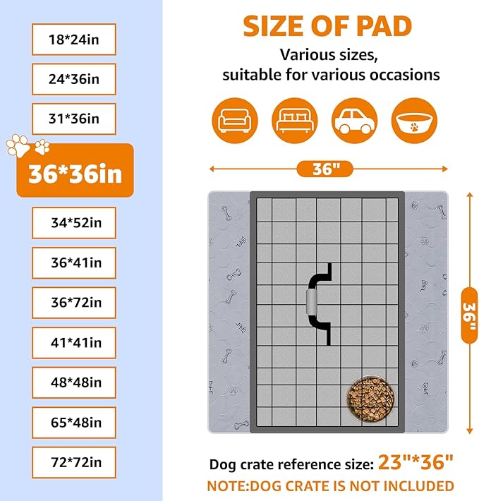 Washable Pee Pads for Dogs, 2Pack Puppy Pads Washable,Absorbent Reusable Whelping Pads, Non-Slip Dog Mats with Bone Print for Floor Protector, Couch Cover, Crate, Potty Training 36x36