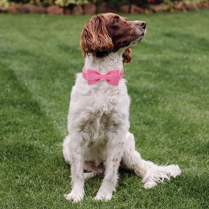 Hot Pink Dog Collars for Small Dog,Cute Corduroy Dog Collar with Bow Tie Safety Metal Buckle Adjustable Puppy Collars for Small Medium Large Boy&Girl Dogs,S-Neck 10"-16"