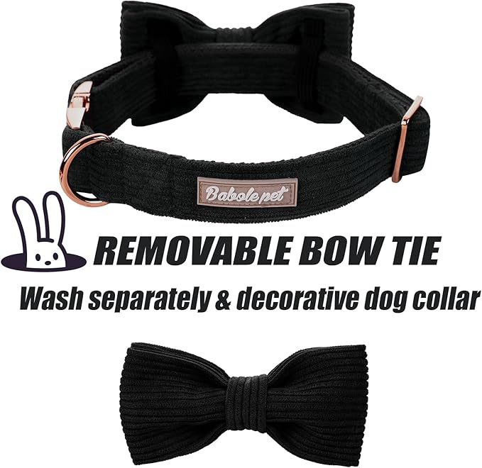 Black Dog Collars for Medium Dog,Cute Corduroy Dog Collar with Bow Tie Safety Metal Buckle Adjustable Puppy Collars for Small Medium Large Boy&Girl Dogs,M-Neck 13.5"-22"
