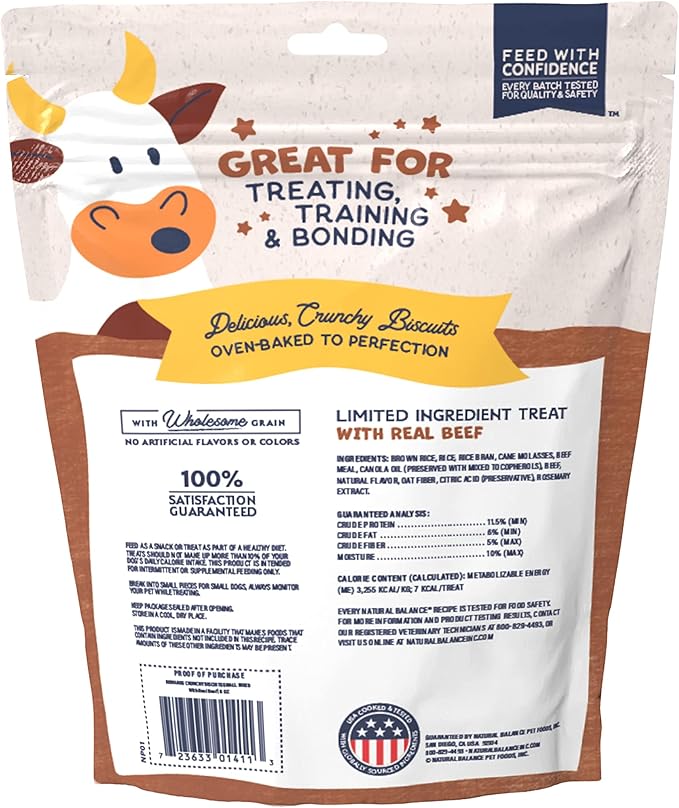 Natural Balance Limited Ingredient Rewards Crunchy Biscuits, Bite-Size Treats for Small-Breed Dogs, Made with Real Beef, 8 Ounce (Pack of 1)
