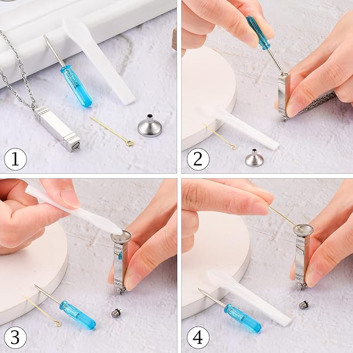 • SIZE and DETAILS -Bar pendant necklace: Length 1.42 inches, Width 0.24 inches. Extension chain length: 20 inches with 2 inches extension chain. Screws and rubber washers ensure a seal that prevents internal ash from falling. The ash necklace will come with a set of tools to help you fill the necklace easier.
