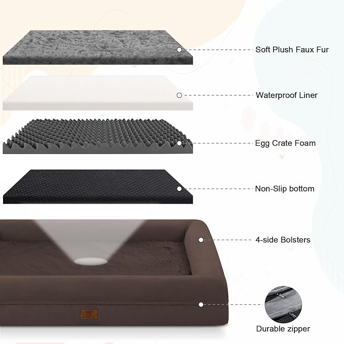Extra Large Dog Bed, Orthopedic Washable Suede Bed with Removable Bolster, Waterproof with Nonskid Bottom, 45" X 35"