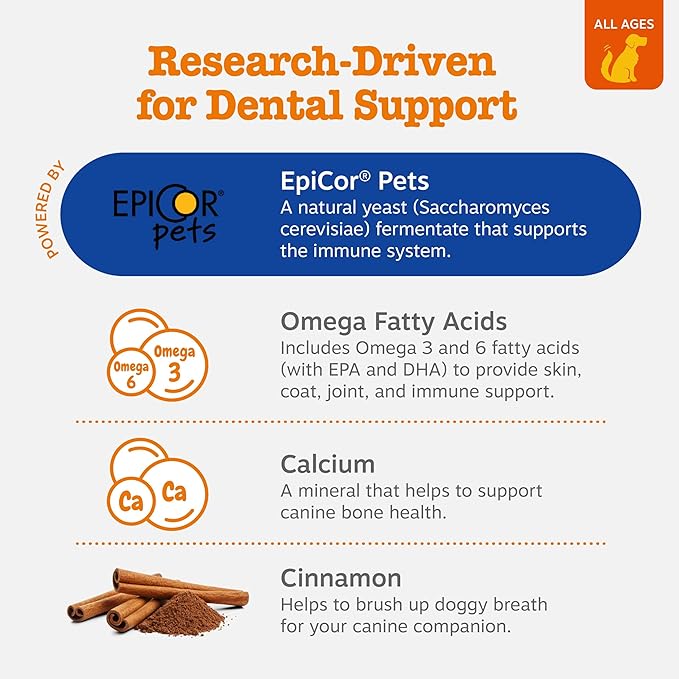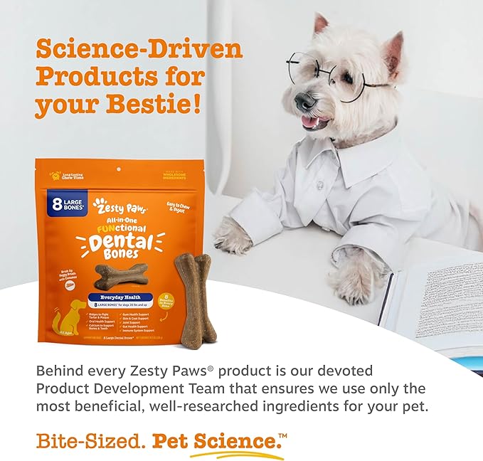 Zesty Paws Dental Bones - Fights Tartar & Plaque - Gum, Teeth & Bone Health - Cinnamon for Dog Breath - Immune, Joint, Gut, Skin & Coat Support - Omega 3 EPA & DHA and Calcium - Large Dogs - 8 ct