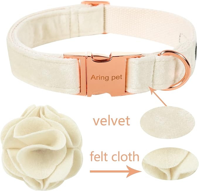 ARING PET Velvet Dog Collars, White Soft Pet Collar with Detachable Felt Flower Metal Buckle for Puppy Small Medium Large Boy Girl Dogs-XS