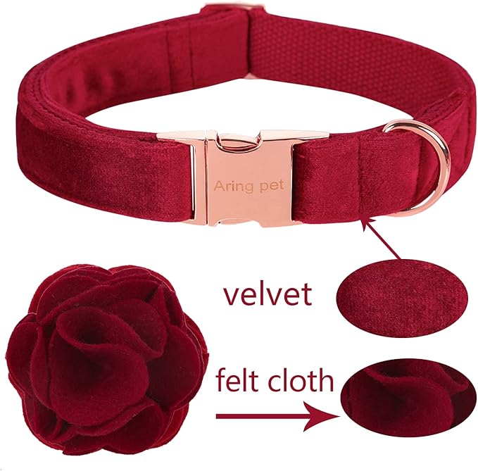 ARING PET Velvet Dog Collars, Christmas Red Soft Pet Collar with Detachable Felt Flower Metal Buckle for Puppy Small Medium Large Boy Girl Dogs-S
