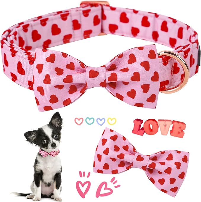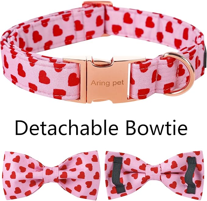 ARING PET Valentine's Day Dog Collar with Bow, Cute Adjustable Pink Heart Bowtie Pet Collars with Metal Buckle for Puppy Small Medium Large Boy Girl Dogs-XS