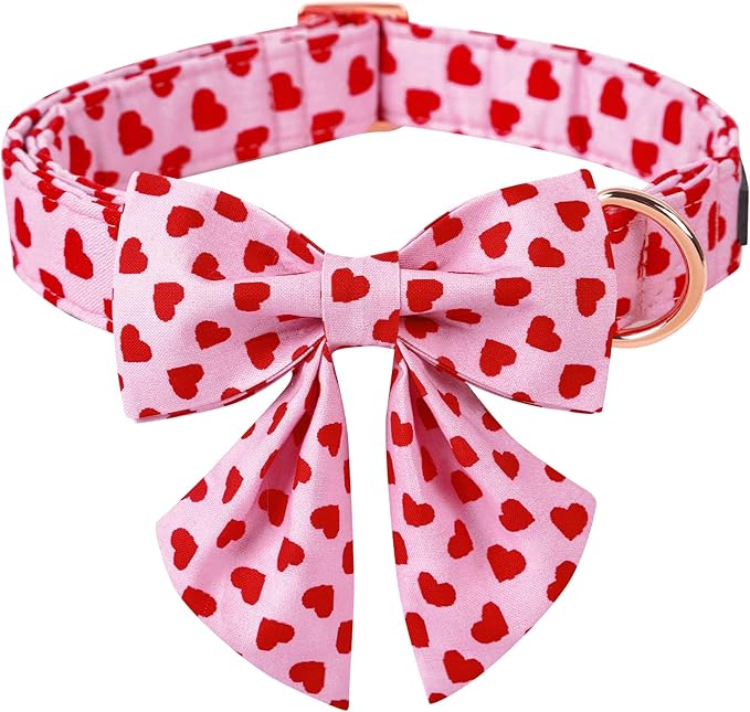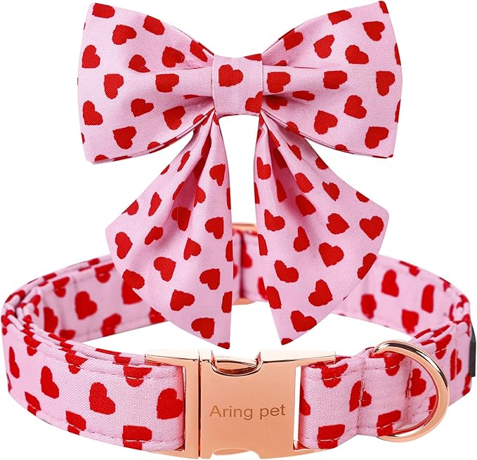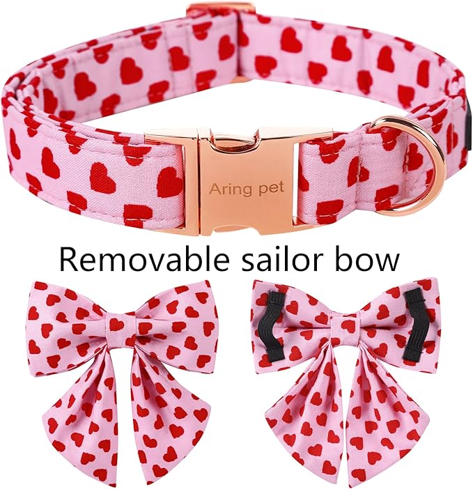 ARING PET Valentine's Day Dog Collar-Adorable Pink Heart Dog Collar with Sailor Bowtie, Comfortable Girl Dog Collars with Metal Buckle