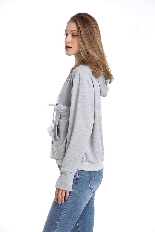 • √ HANDS FREE – Pet carrier sweatshirt is not only a ideal tool for helping you to carry small pets around and socialize, but also helping to keep your hands free! Pet Pouch Sweatshirt is the ultra-comfortable fabric sweatshirt that is made for you and your cat! It features a built-in front pouch that allows you to carry your cat small dog everywhere you go.
