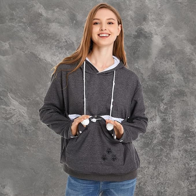 • √ HANDS FREE – Pet carrier sweatshirt is not only a ideal tool for helping you to carry small pets around and socialize, but also helping to keep your hands free! Pet Pouch Sweatshirt is the ultra-comfortable fabric sweatshirt that is made for you and your cat! It features a built-in front pouch that allows you to carry your cat small dog everywhere you go.