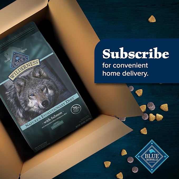 Blue Buffalo Wilderness Natural High-Protein Dry Food for Adult Dogs, WITH WHOLESOME GRAINS, Salmon, 28-lb Bag.