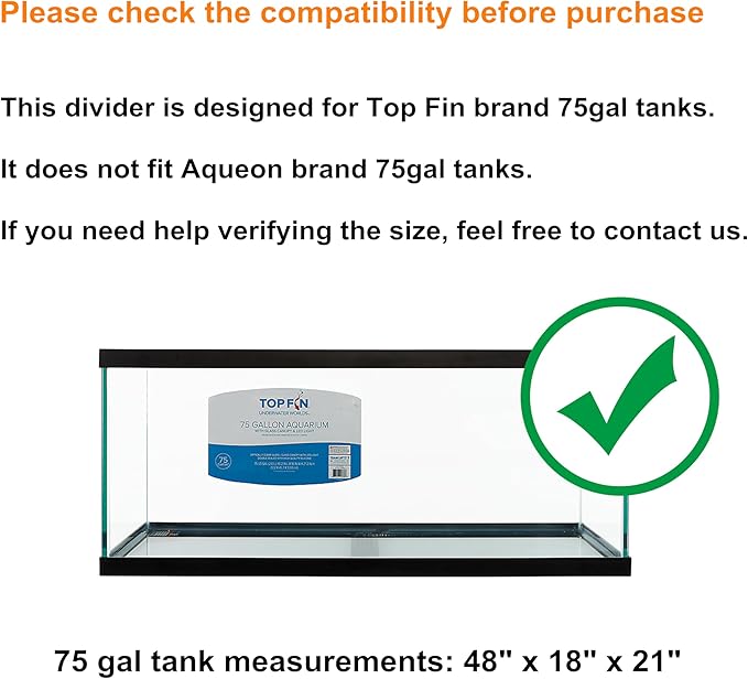 Acrylic Aquarium Divider Kit 5.5/10 / 20L / 20H / 29 / 40B / 55/75 / 125gal Fish Tank with Suction Cups (75gal Top Fin)