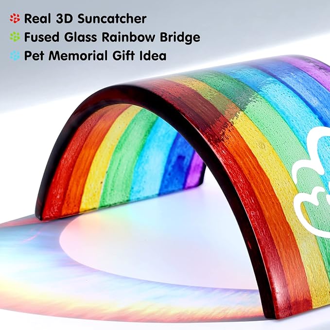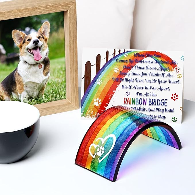 Huray Rayho Rainbow Bridge Fused Glass 3D Colorful Bridge with Sympathy Card Memorial Gift for Dog Cat Guinea Pig Lover Pet Lost Present Sorry Gift Set of 2