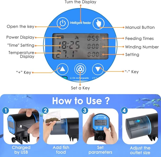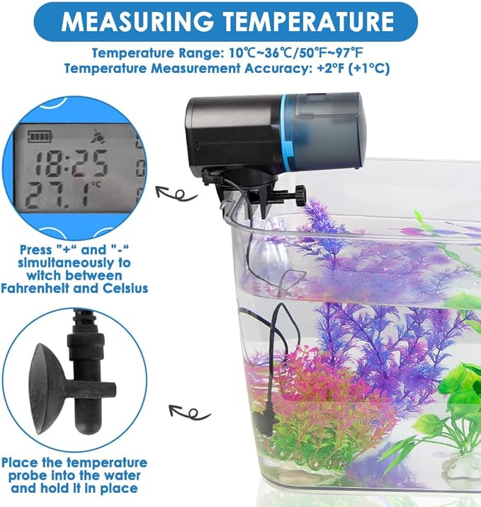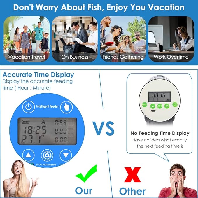 About This 【Accurate Time&Temperature Display】 --- New version fish feeder would display accurate time ( Hour : Minute), which can... Read more
