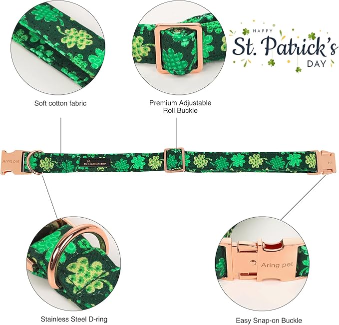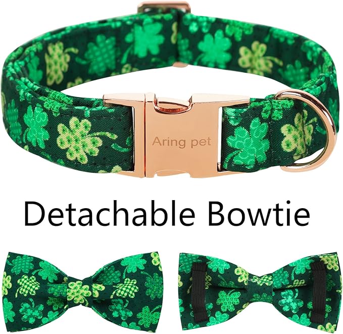 ARING PET St. Patrick's Day Dog Collar with Bow, Cute Adjustable Plaid Clovers Bowtie Pet Collars with Metal Buckle for Puppy Small Medium Large Boy Girl Dogs-M