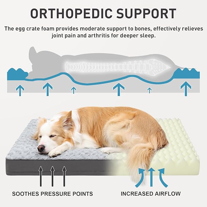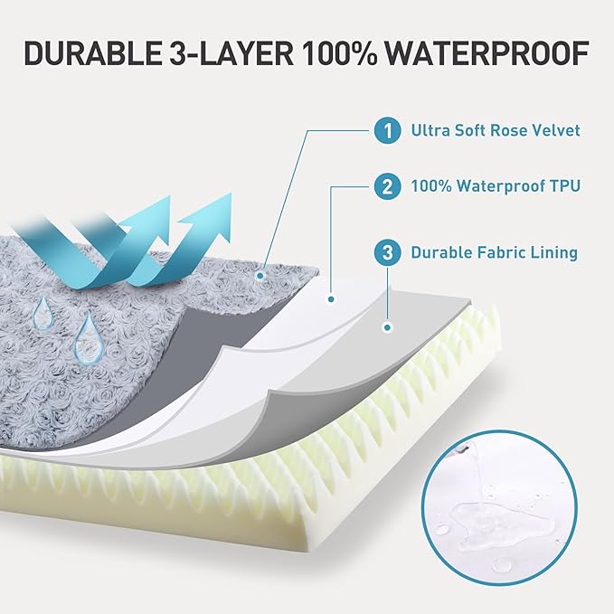 KSIIA Dog Crate Bed Waterproof for Extra Large Dogs - Rose Velvet Soft Fluffy Washable with Removable Cover & Anti-Slip Bottom, 47 x 29 Inch, Light Gray