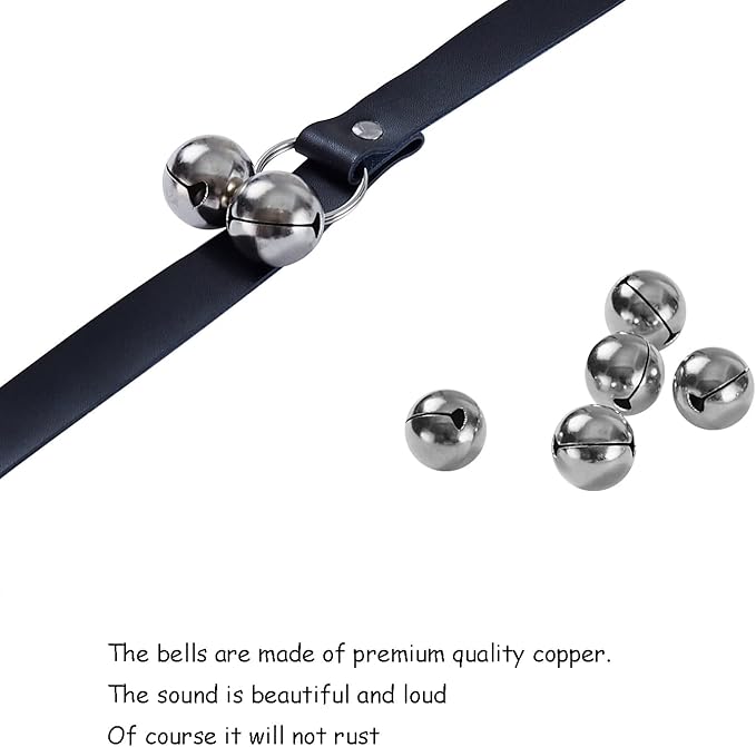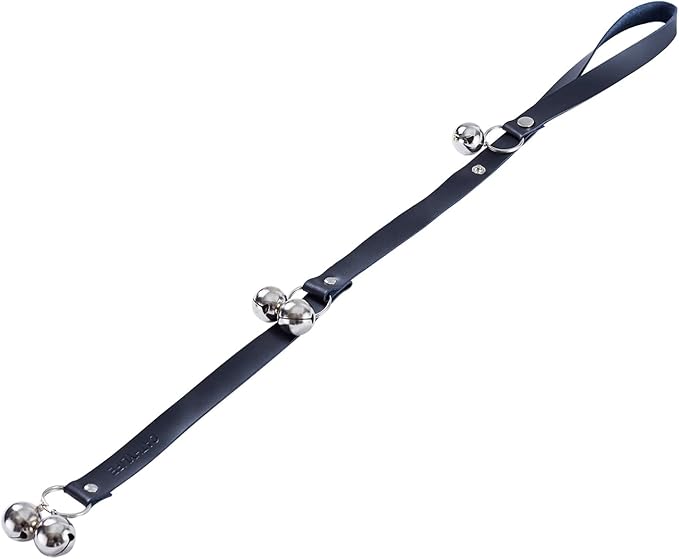 Leather Dog Doorbells for Door Knob/Potty Training/Go Outside, Length Adjustment Copper Dog Bell, Housetraining Hanging Bell, Black Leather Silver Bells.