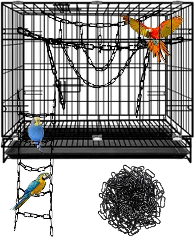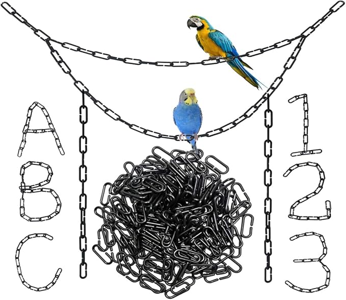 600-Piece Black Plastic Chain Links & Toys - Interlocking C-Clip Bird Cage Accessories for Parakeets, Sugar Gliders, Small Pets (Climbing/Swinging Toys)